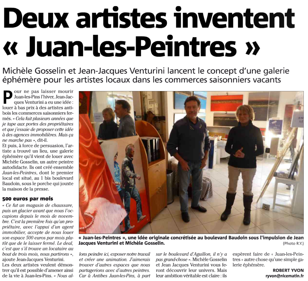 Juan Les pins – Exposition permanente Atelier/Galerie “Passage des Arts”.