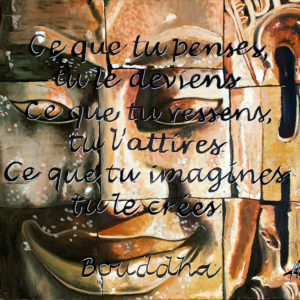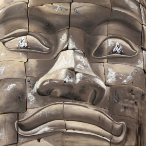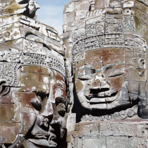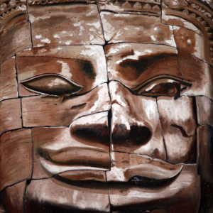 Dans ce tableau, l’artiste a choisi de mettre en évidence le visage de la statue d’Angkor Bath. Cette décision artistique met en avant la puissance et la symbolique de cette statue en relation avec la lutte pour la liberté du Tibet. Le visage de la statue semble transmettre une profonde sérénité, mais aussi une résilience indomptable face à l’oppression.