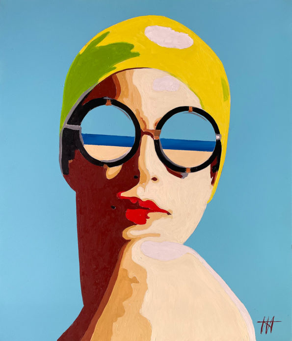 Huile sur PVC – Tableau – Femme à Lunettes / 4