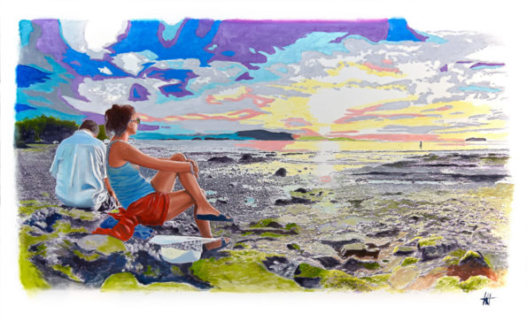 Huile sur toile contre collée sur PVC, finition résine. Encadré.
