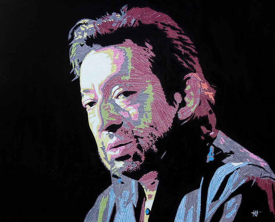 Catégorie: Vendus Mots clés: Antibes, chanteur francophone, gainsbarre, gainsbourg, galerie venturini, Newspaper Art, peinture gainsbourg, people