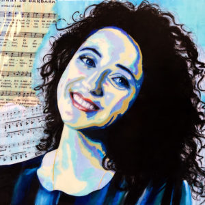 Huile, collage journaux et perles,résine sur PVC (encadré)