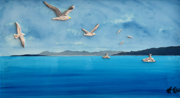 Toile à quatre mains,Cyrille Eibl/JJ V – Huile, céramique et résine sélective sur PVC (encadré).