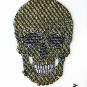Huile et collage vinyle original 45 tours sur toile, finition résine (encadré).