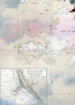 Carte marine authentique des Bouches de Bonifacio au port Brandinci et giclée sur plexiglass.